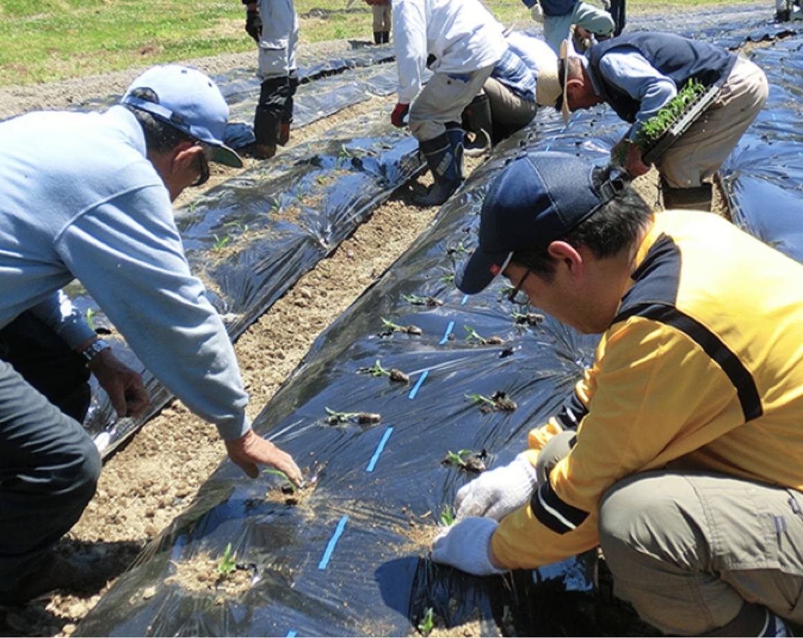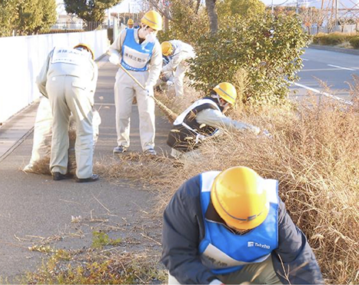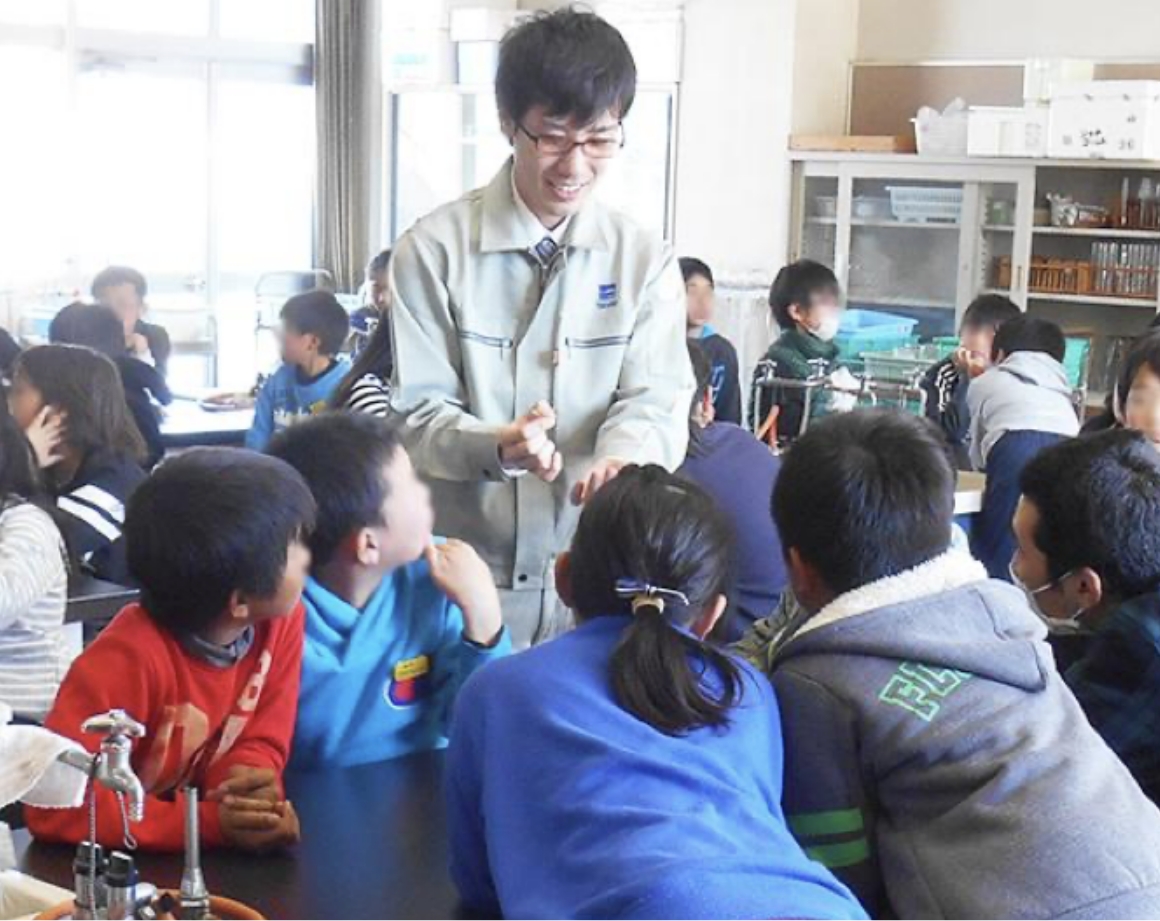 We conduct science experiment classes at elementary schools, participate in hometown volunteer activities by helping farmers with their work, clean the areas around our factories, and contribute through the naming rights of Tateho Wakuwaku Land.